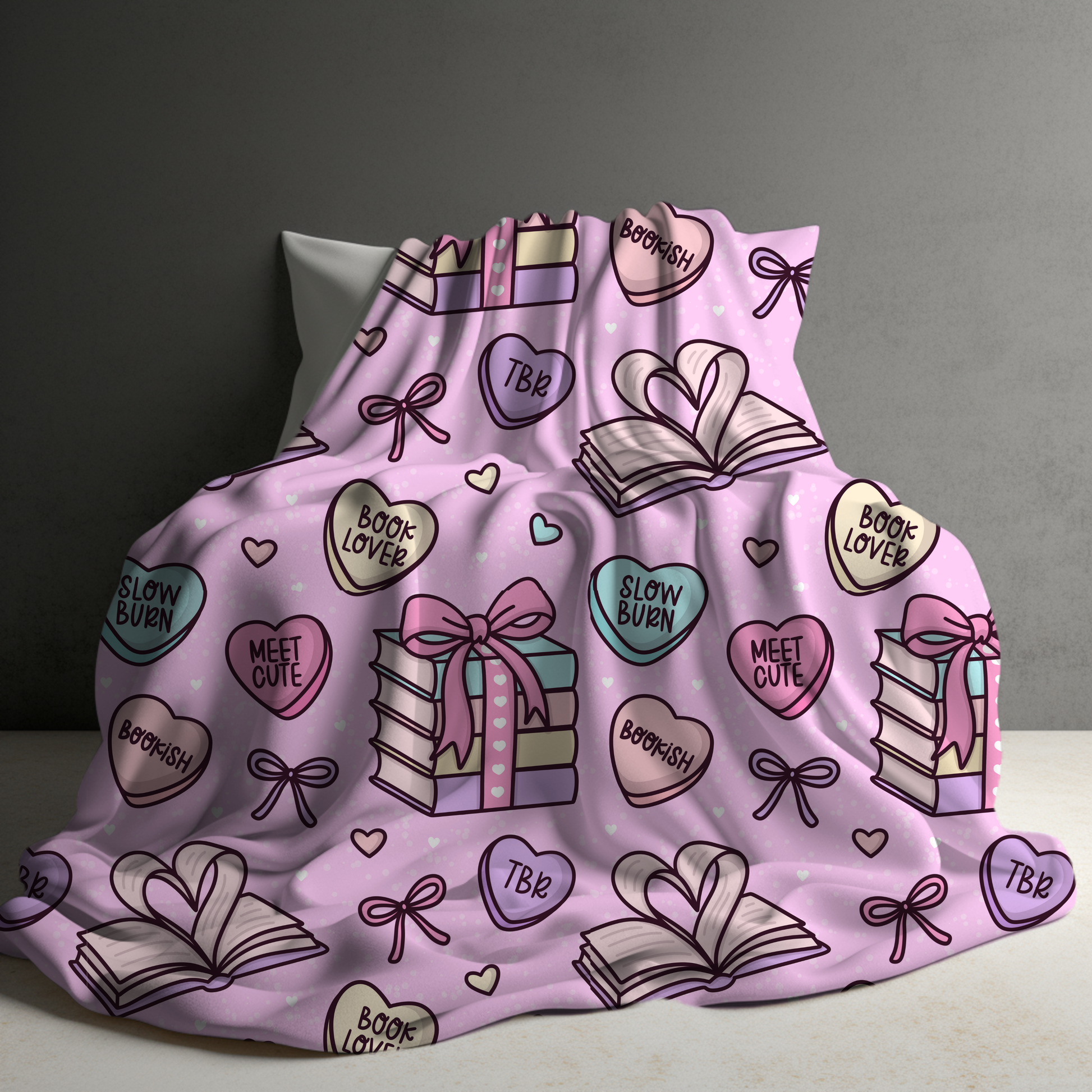 Blanket - Valentine’s Day - Book Hearts Pink - PREORDER