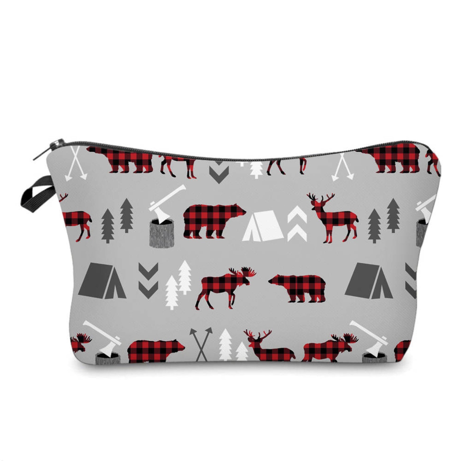 Pouch - Holiday Christmas - Plaid Woodland Creatures on Grey