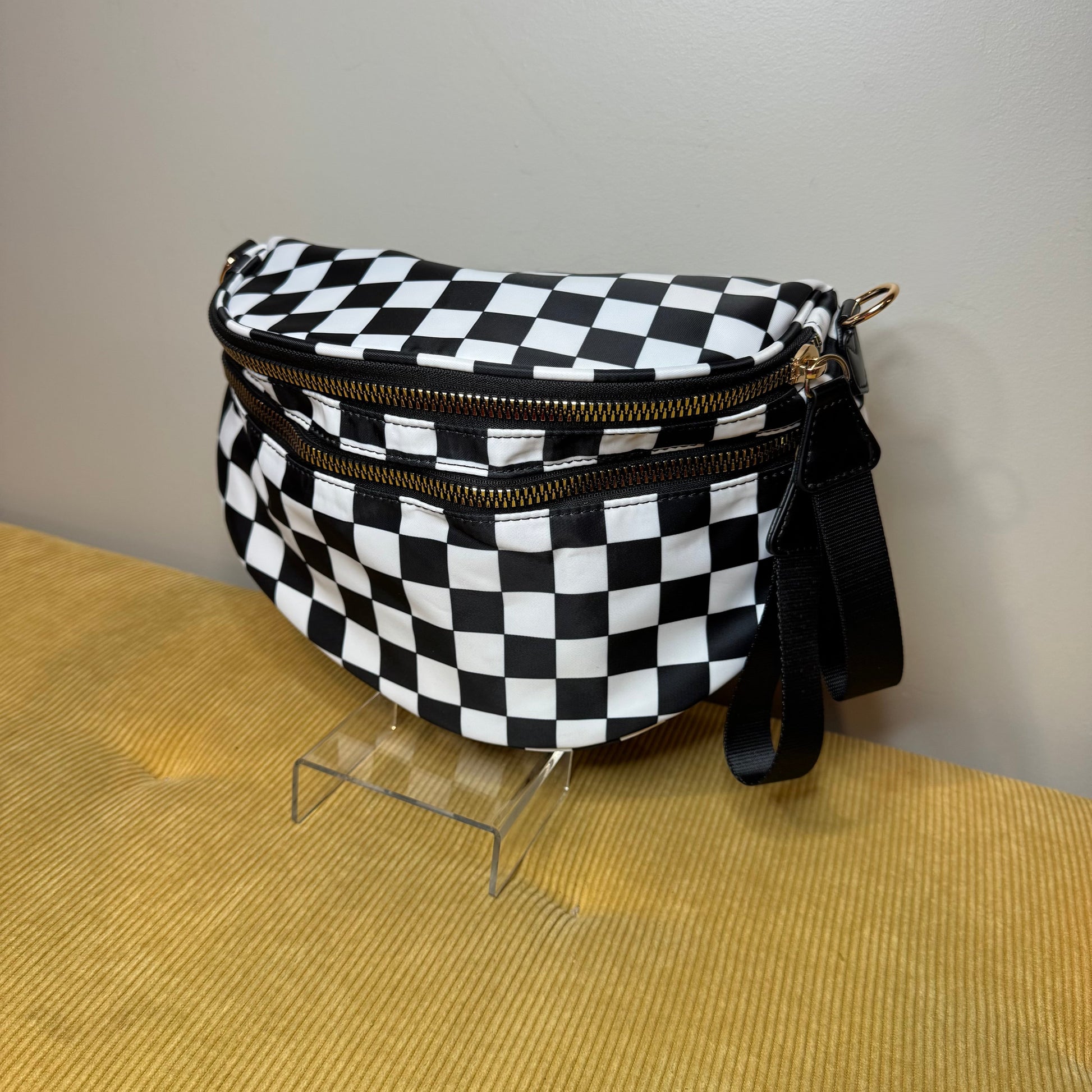 The Roni Nylon Crossbody - Checkered Black & White